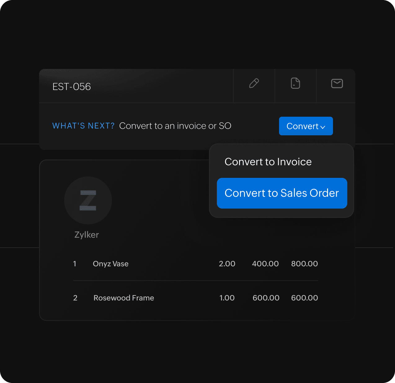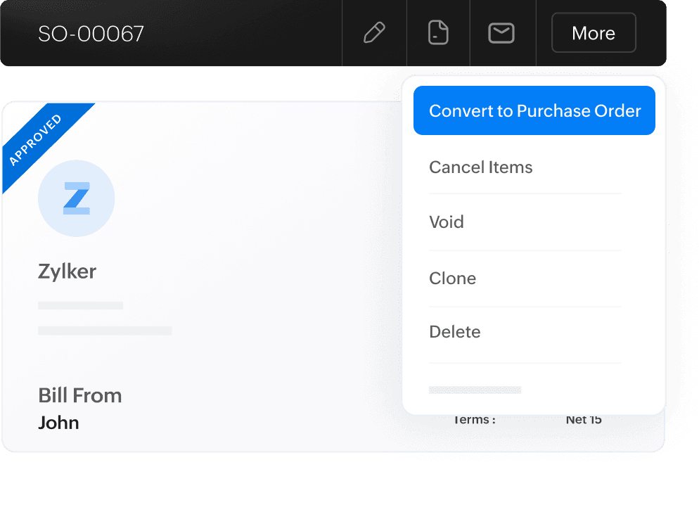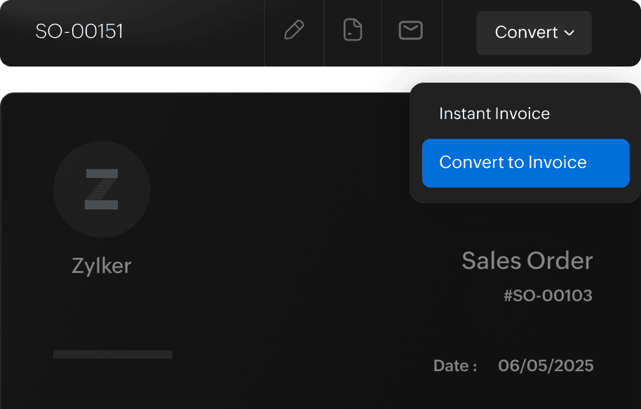 Got the green light from your customer? Convert the approved sales order into an invoice in the same document. Yes, it's that simple with Zoho Books!