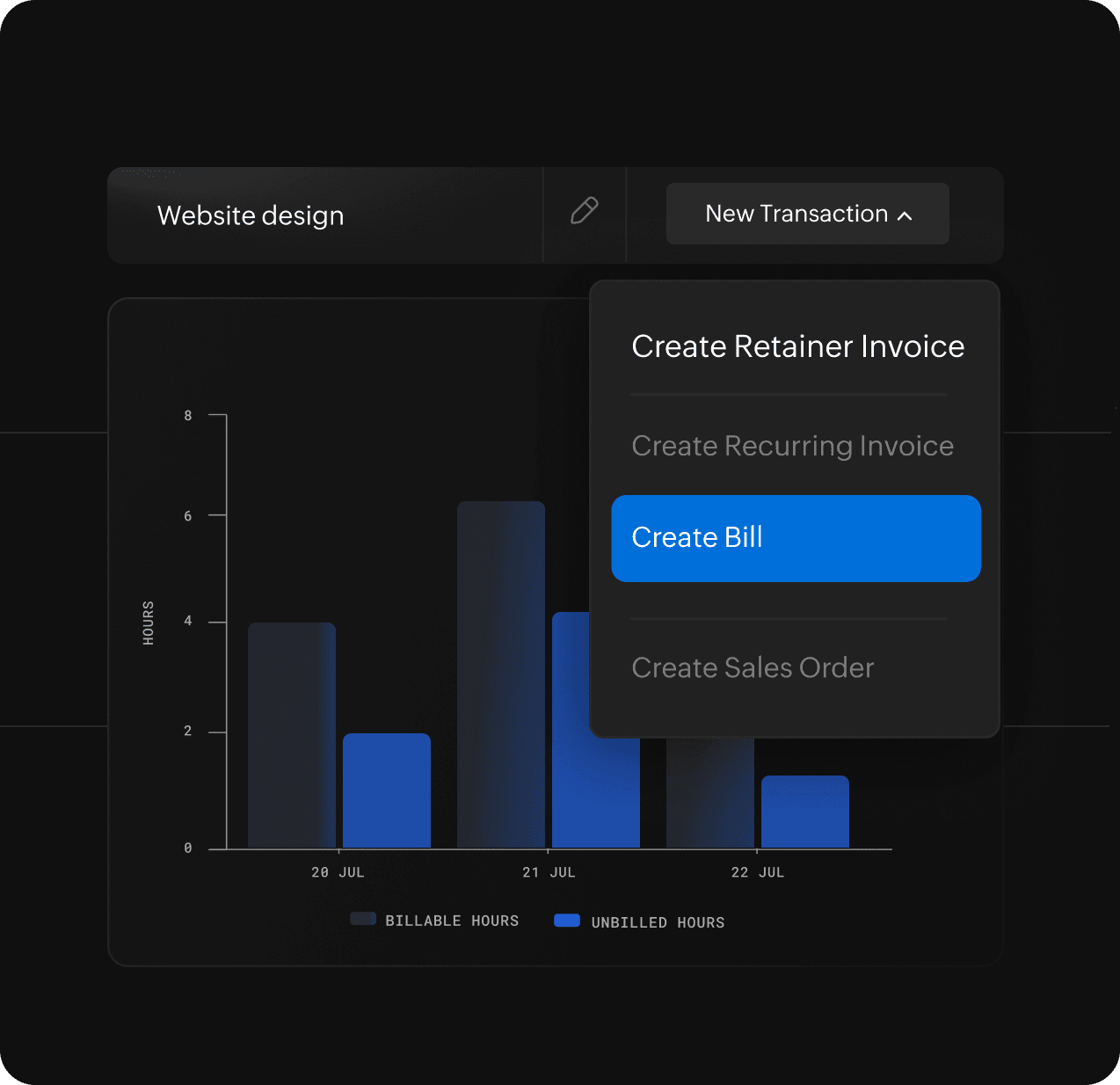 We get it; one-size-fits-all billing doesn't work for projects. Here's how Zoho Books helps you get paid for your work, letting you customize your billing to align perfectly with your project's demands.