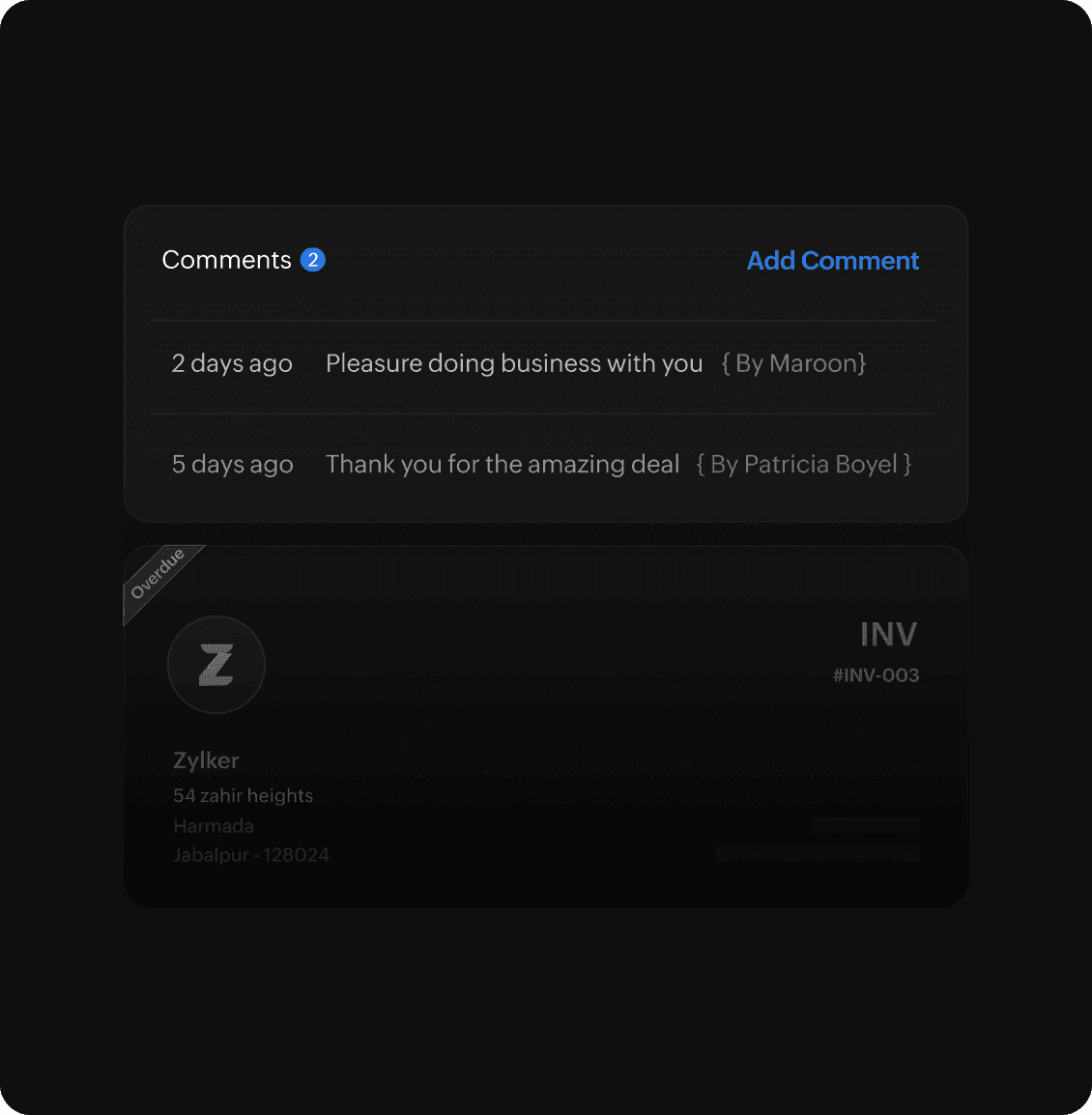 Communicate via comments on projects, invoices, quotes, and sales orders to appreciate quick payments, negotiate prices, or provide other updates.